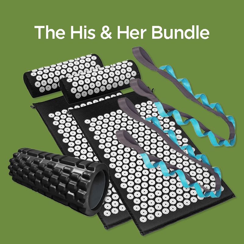 Our ZenClinic™ His & Her Bundle comes with 2 x ZenClinic™ Acupressure Mats, 2 x Stretch Straps and 1 x Massage Rollers, ensuring better all round health benefits.